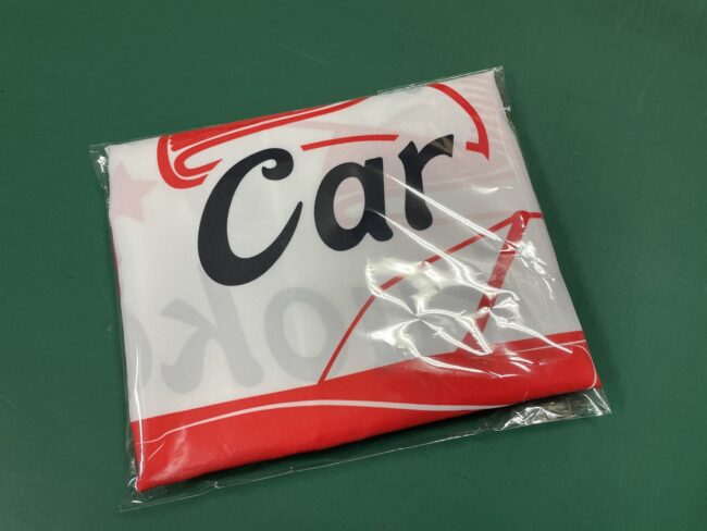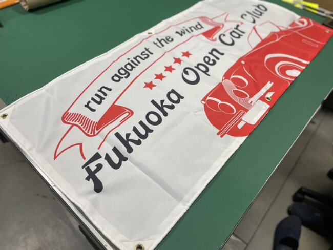 ステッカーをリピートご依頼いただいているお客様で、今度はチーム旗を作りたいとご相談いただきました。