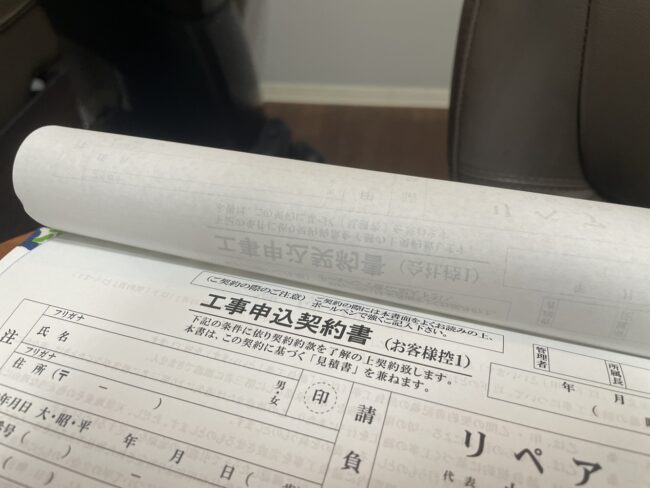 名刺、印鑑をご依頼いただき、続いて複写式伝票の工事申込契約書もご依頼いただきました。
